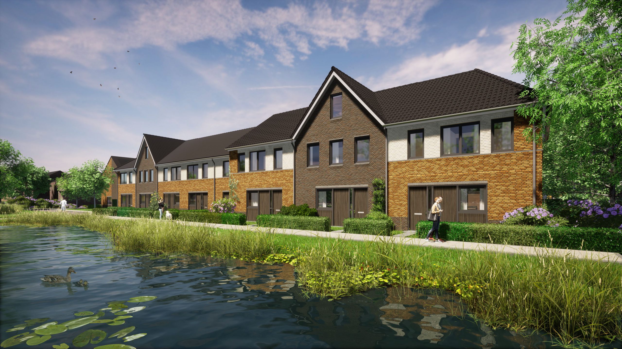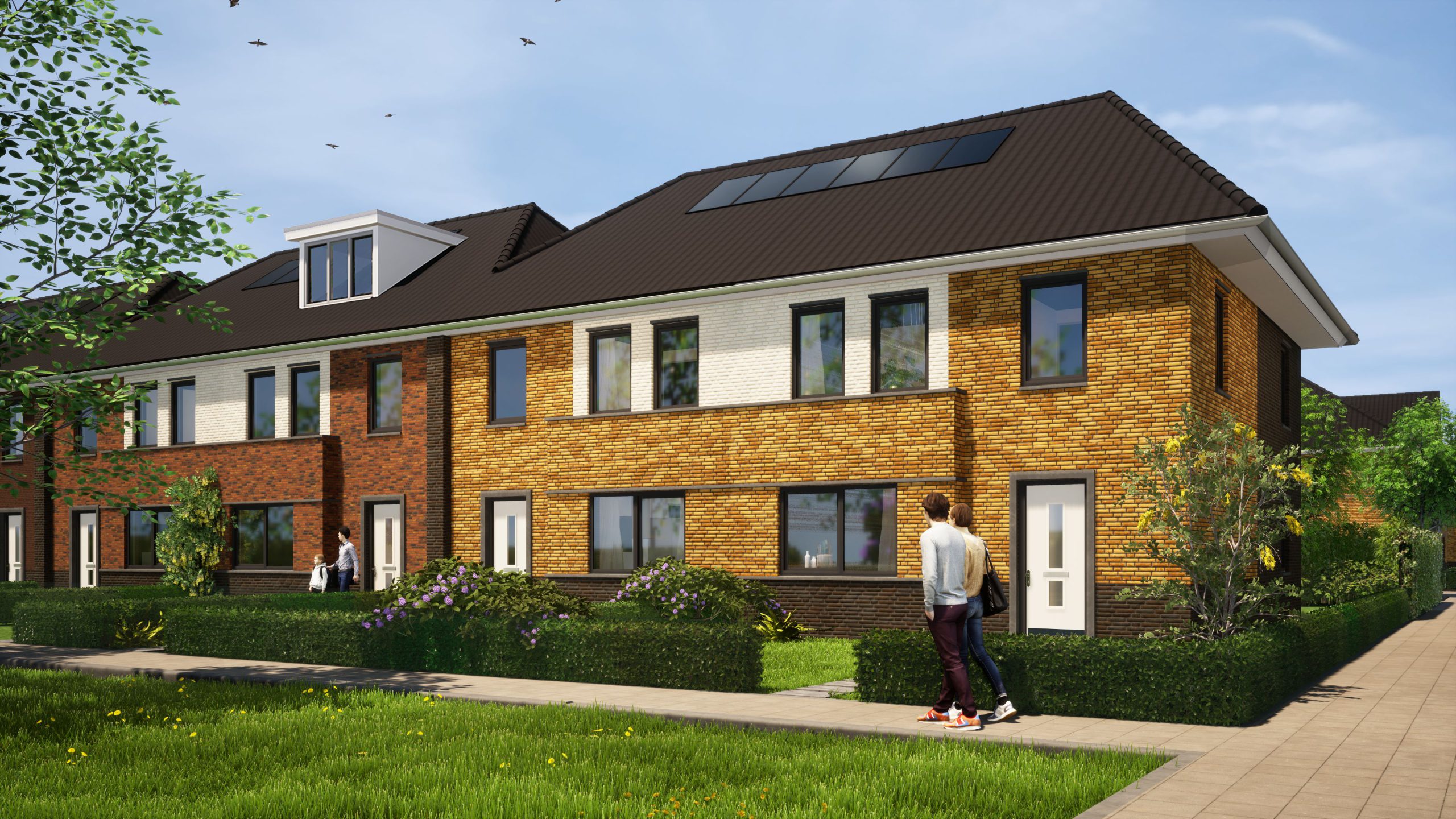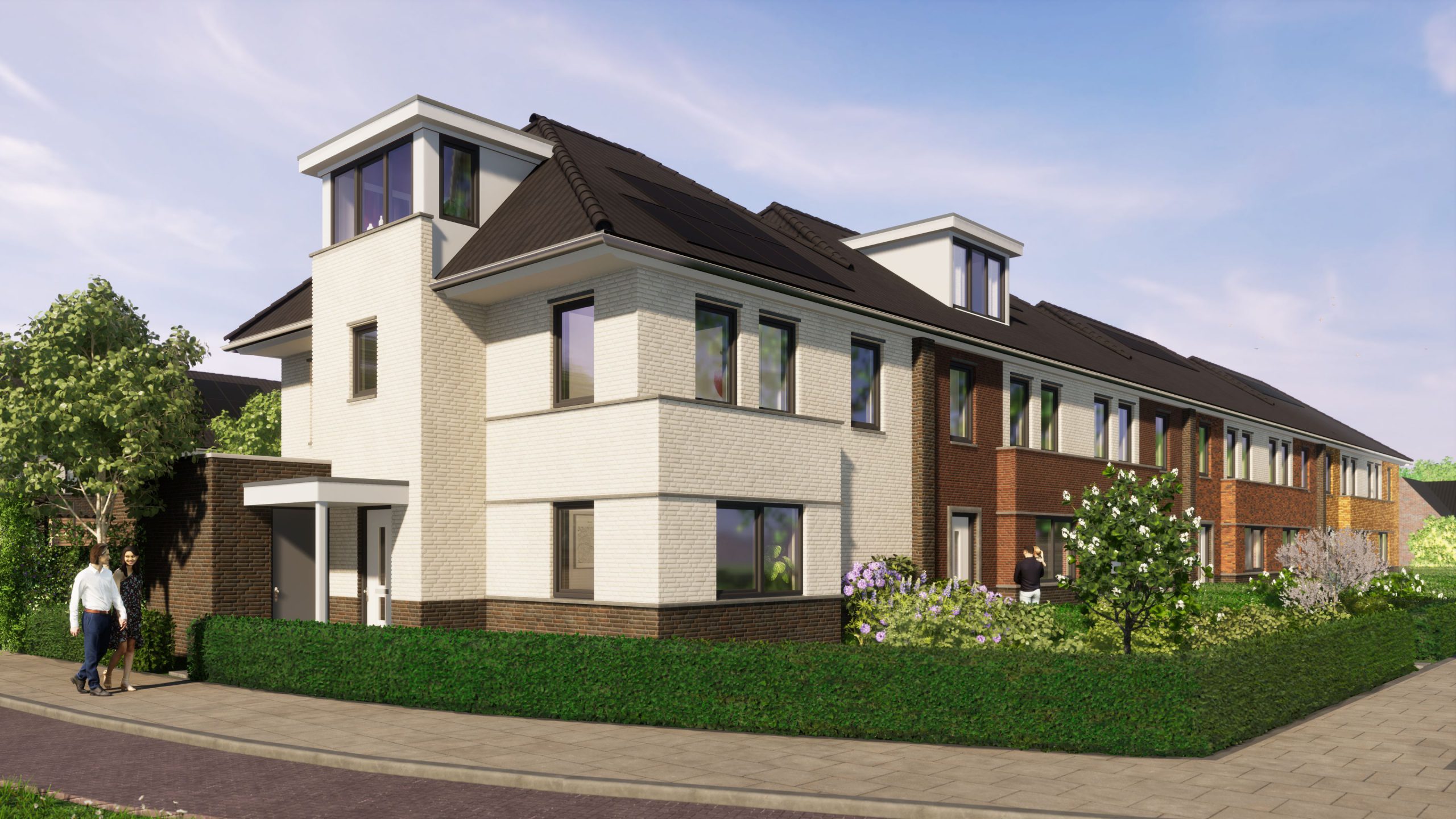 “De woningen hebben schuine daken. De materialen zijn traditioneel, maar met een knipoog naar de huidige tijd. Met de keukens steeds aan de straatzijde
