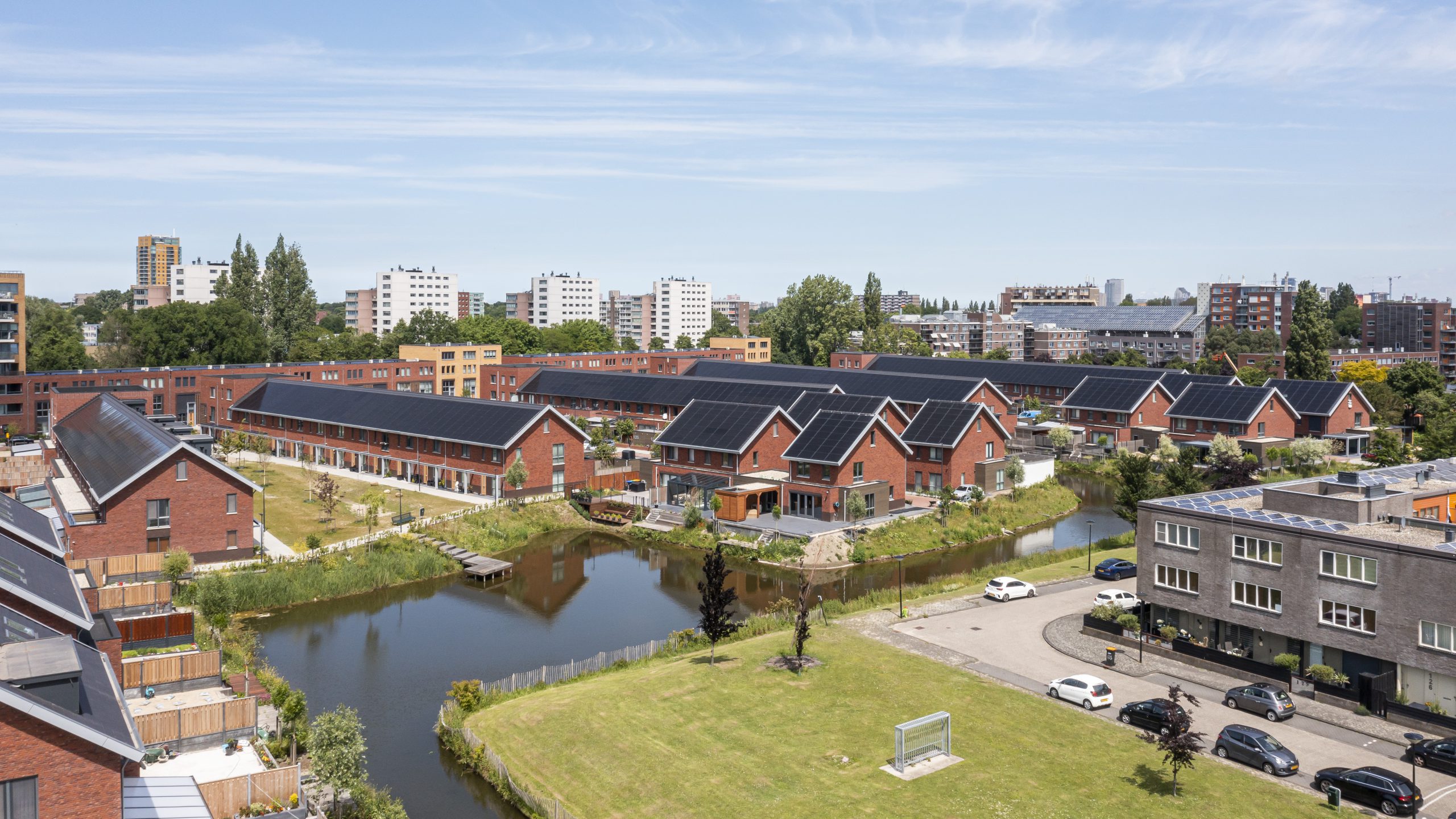 “Maar natuurinclusief bouwen is een samenspel op meerdere niveaus. In de architectuur zijn vleermuis- en vogelkasten opgenomen in de gevels. En de tuinen bij de huizen hebben we zorgvuldig ingepast in het landschap. Op de parkeerplaatsen staan sierkers en sierpeer, die leveren veel bloesem en voedsel voor insecten en vogels.”