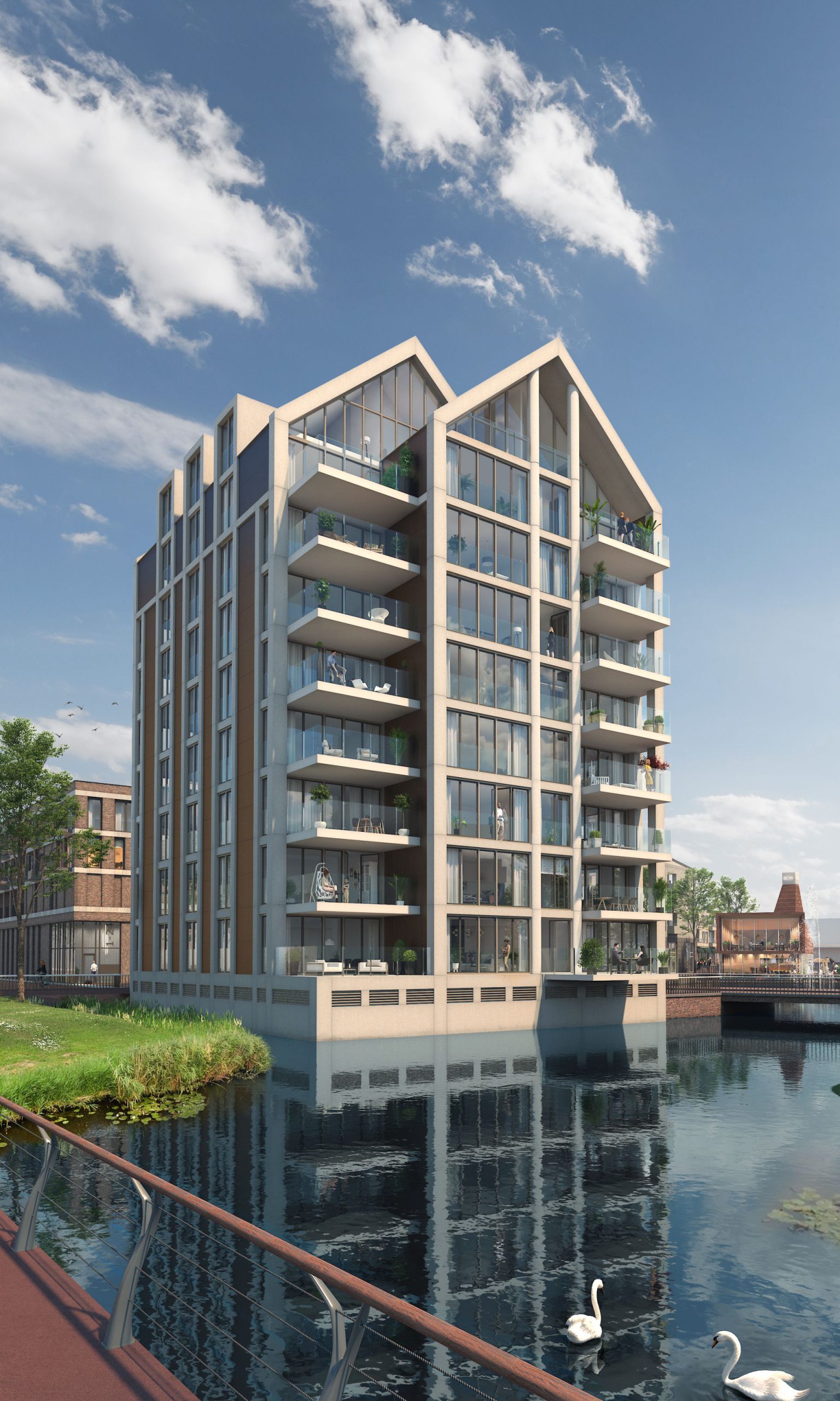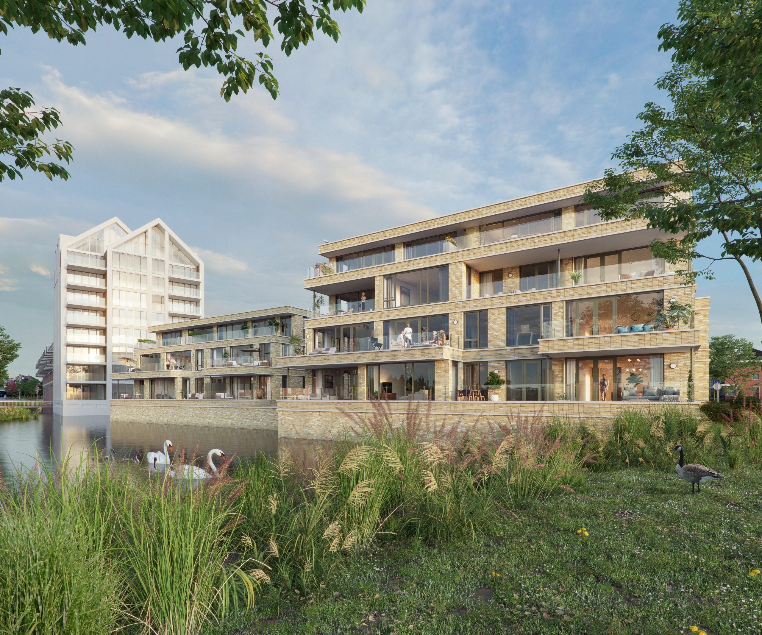 Het resultaat is een veelzijdig centrumproject met 170 duurzame en gasloze woningen, een Lidl-supermarkt van 2.500 m2 en 3.130 m2 winkels, horeca en leisure. Dit vastgoedprogramma dekt amper de lading, betoogt ABB-commercieel directeur Frank van Dijk. “In feite vergroten we met Berkel Centrum West het dorpscentrum. We richten het volledige openbaar gebied in. Zo brengen we de naastgelegen Berkelse Plas het projectgebied in. Door het water naar binnen te halen tot aan de Westersingel voegen we 4.000 m2 water toe, waardoor een binnenhaventje ontstaat. Hieraan ontwikkelen we een intiem plein met terrassen. “