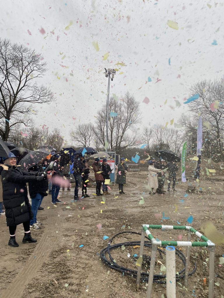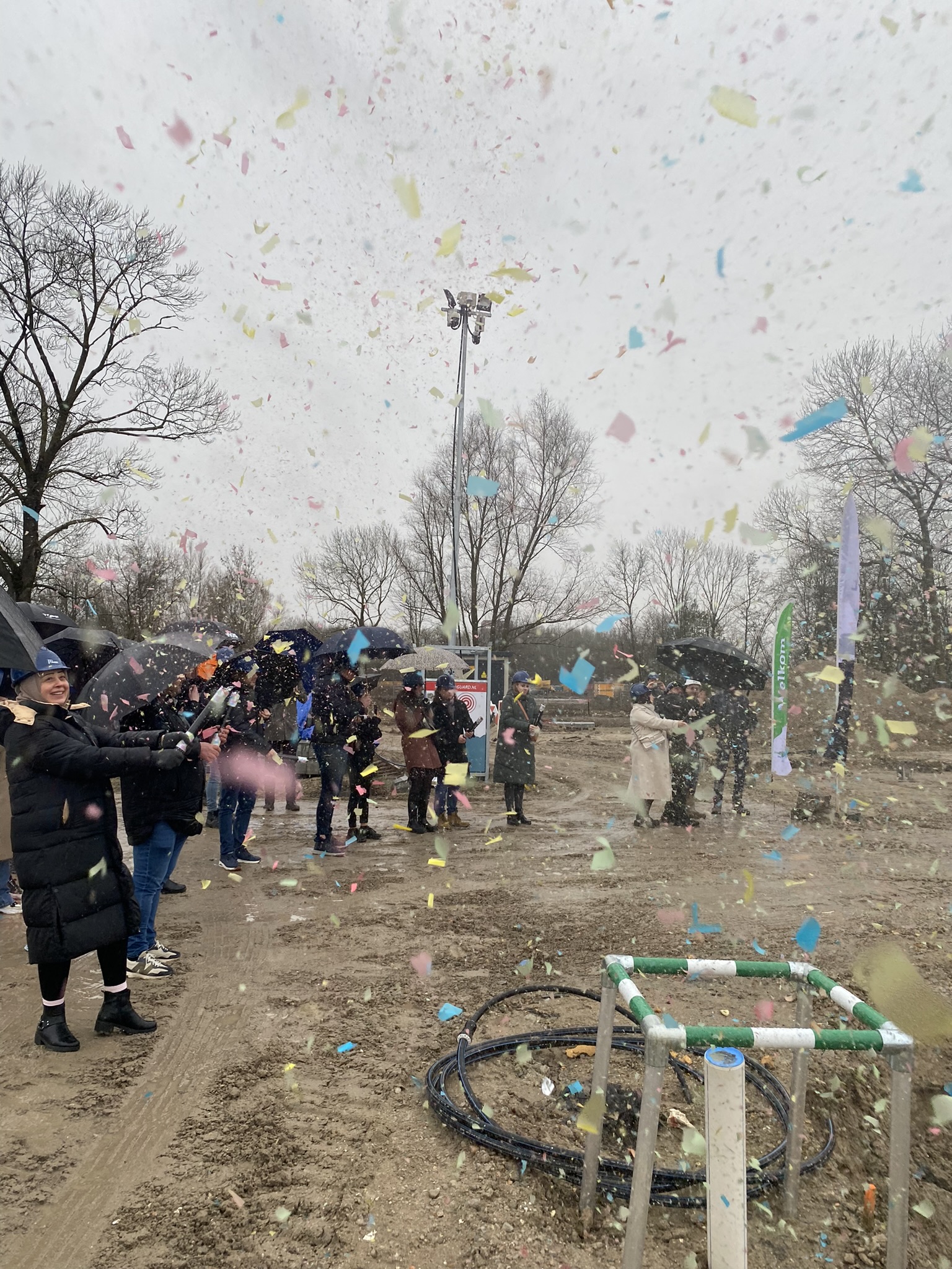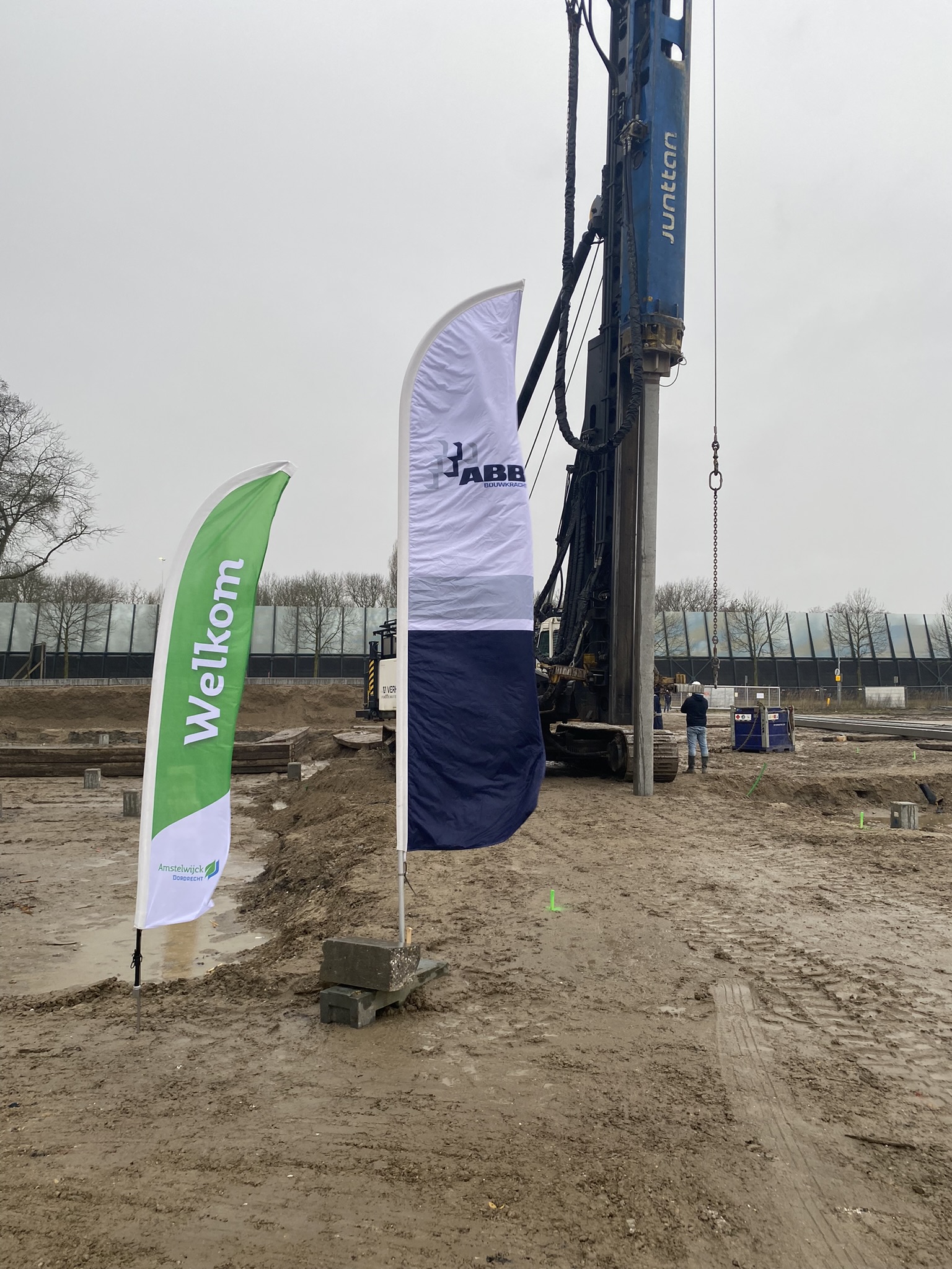 Dinsdag 23 januari was het feest op de bouwplaats van Amstelwijck Park in Dordrecht. Kopers, afgevaardigden van de gemeente Dordrecht, ons ontwikkel- en bouwteam en andere betrokkenen vierden de start bouw van fase 4c1. Aan wethouder Maarten Burggraaf de eer om de symbolische eerste paal te slaan. Na het officiële moment was er gelegenheid om met elkaar te proosten op deze mooie stap in dit duurzame project en elkaar beter te leren kennen.