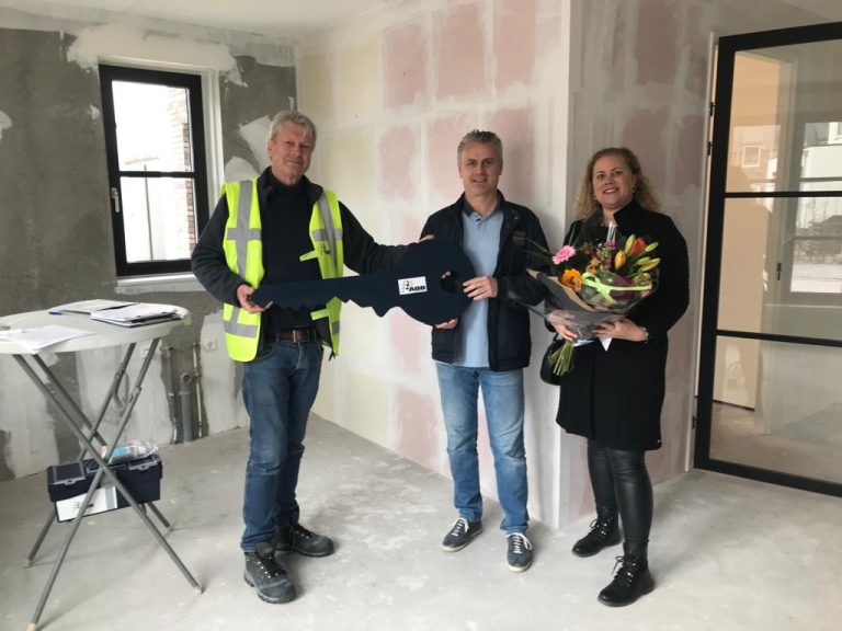 Leen Visser, uitvoerder bij ABB, overhandigde op gepaste afstand de sleutel aan de bewoners. Nu de kopers de sleutel hebben ontvangen maken de werknemers van ABB plaats voor vrienden en familie. Zij kunnen de komende weken aan de slag met het inrichten van de nieuwe woning.