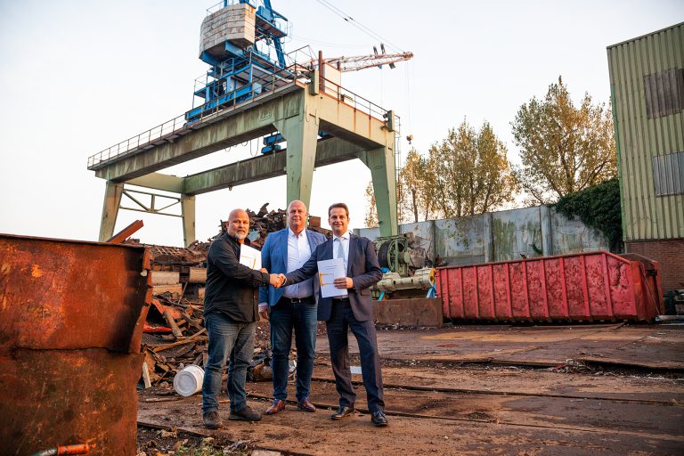 De heer W. Stolk: “Dit familiebedrijf is gesticht in 1895. Het was één van vele scheepsloperijen langs de dijk. Jarenlang was dit een plek van broodwinning en werkgelegenheid. Vandaag is een historische handtekening gezet op deze historische plek”.