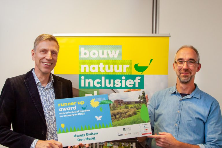 Haags Bui­ten valt in de prij­zen! Het pro­ject ein­dig­de op een mooie twee­de plek van de Award Na­tuur­in­clu­sief Bou­wen en Ont­wer­pen, een ini­ti­a­tief van Vo­gel­be­scher­ming Ne­der­land en de Zoog­dier­ver­e­ni­ging. Doel van de prijs­vraag is om bouw-, ver­bouw- of re­no­va­tie­pro­jec­ten te on­der­schei­den, die aan­toon­baar re­ke­ning hou­den met de be­hoef­ten van ál­le ge­brui­kers van de ste­de­lij­ke om­ge­ving: mens én dier.